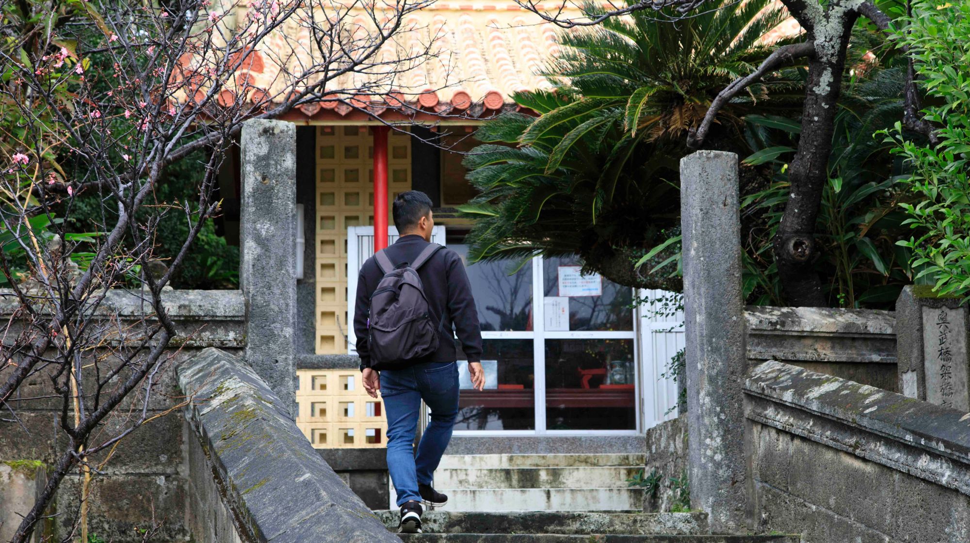 さて、次は橋で繋がる離島「奥武島」へ。周囲約2キロほどの漁師の島。島には、漁師たちが獲った魚を売る店や、てんぷら店などが点在しています。まずは島の守り神の「奥武島観音堂」へ。ここでは5年に一度、島民が総出になって開催する「観音堂祭」があります。その歴史は400年以上も続けられ、島の伝統が大切に守られています。