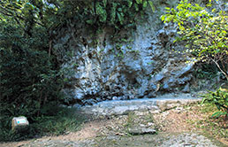 三角形の空間の突き当り部分は、三庫理、右側の岩の上がチョウノハナで、それぞれが拝所となっています