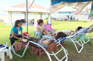 あざまサンサンビーチの夏季限定プログラム。波の音や海の風を感じながらの足裏リフレクソロジーは、深いリラックスを味わえます。 -