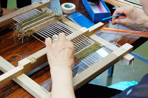 地域に自生する植物から繊維を取り出し、簡易織り機でコースターなどを織る体験のインストラクターを養成し、プログラムづくりを推進しています。 -